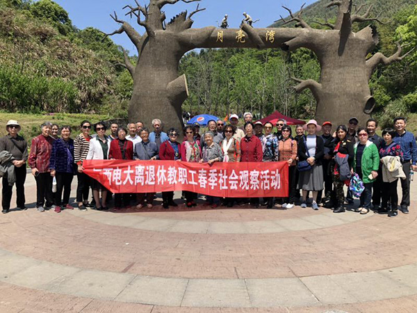 为丰富离退休教职工的精神文化生活,把学校对老同志的关心和爱护落到实处,417日,离退休党总支、离退办组织离退休教职工前往湾里区九龙溪生态公园,开展春季社会观察活动。