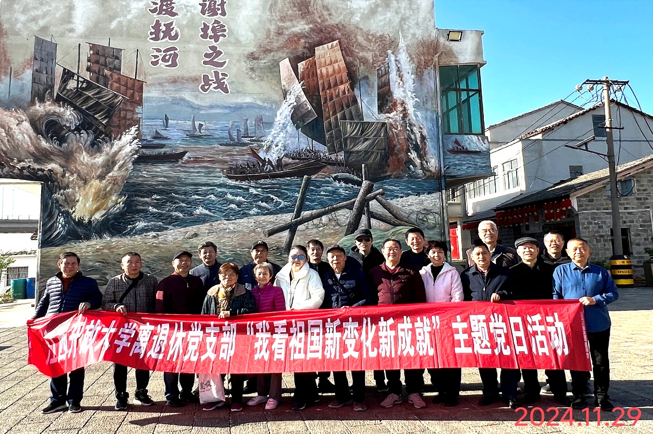 今年是中华人民共和国成立75周年。为了解新时代我省经济社会发展新气象新变化,牢记初心使命,缅怀革命先烈、传承红色基因。112829日,离退休第一、第二党支部组织40余名离退休党员到南昌市青山湖区罗家镇谢埠老街、南昌东站开展“我看祖国新变化”主题党日活动 。