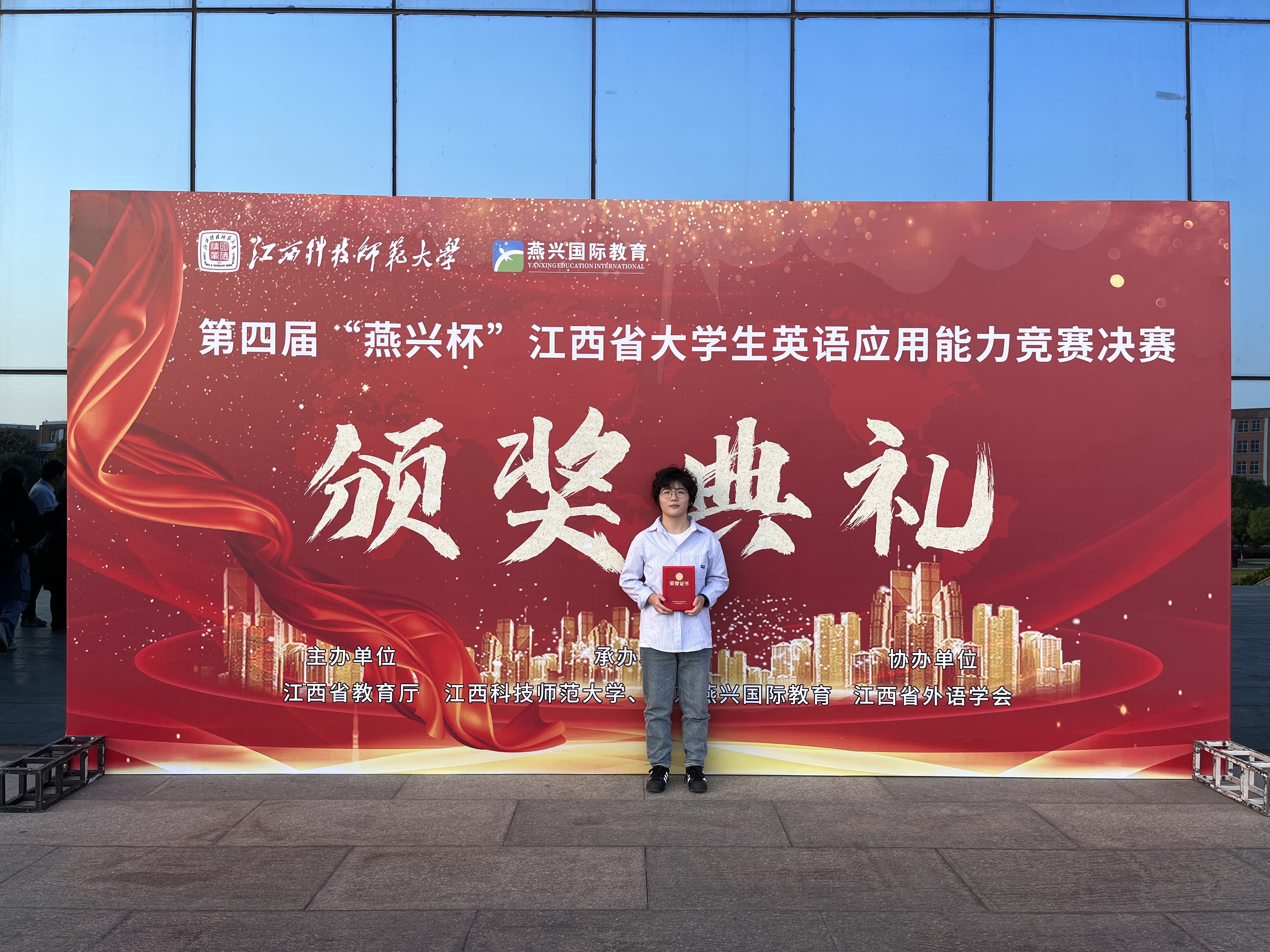 2023年10月21日至22日, 由江西省教育厅主办的第四届“燕兴杯”江西省大学生英语应用能力竞赛在江西省科技师范大学举行。我院2022级应用英语专业唐金瑶同学,与来自江西省全省范围内的三十多所高等职业院校的一百四十多名优秀学子同堂竞技,通过两天紧张的笔试和口试,取得专科组省级决赛三等奖佳绩!