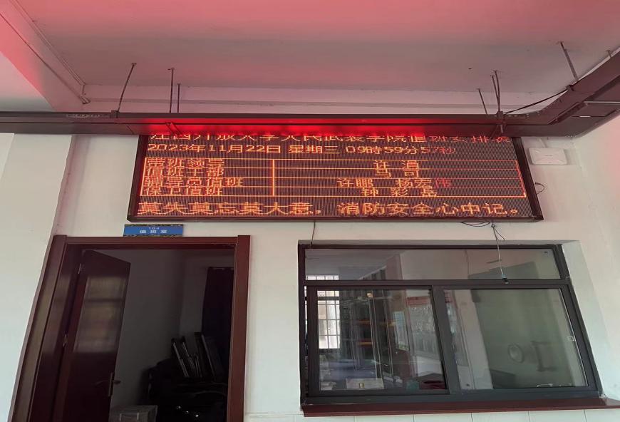 三、宣传教育氛围浓。一是开展消防“亮屏”活动。分别在值班室LED显示屏滚动播放宣传标语、并在操场、食堂、宿舍楼宣传消防警示标语,营造校园消防安全氛围。