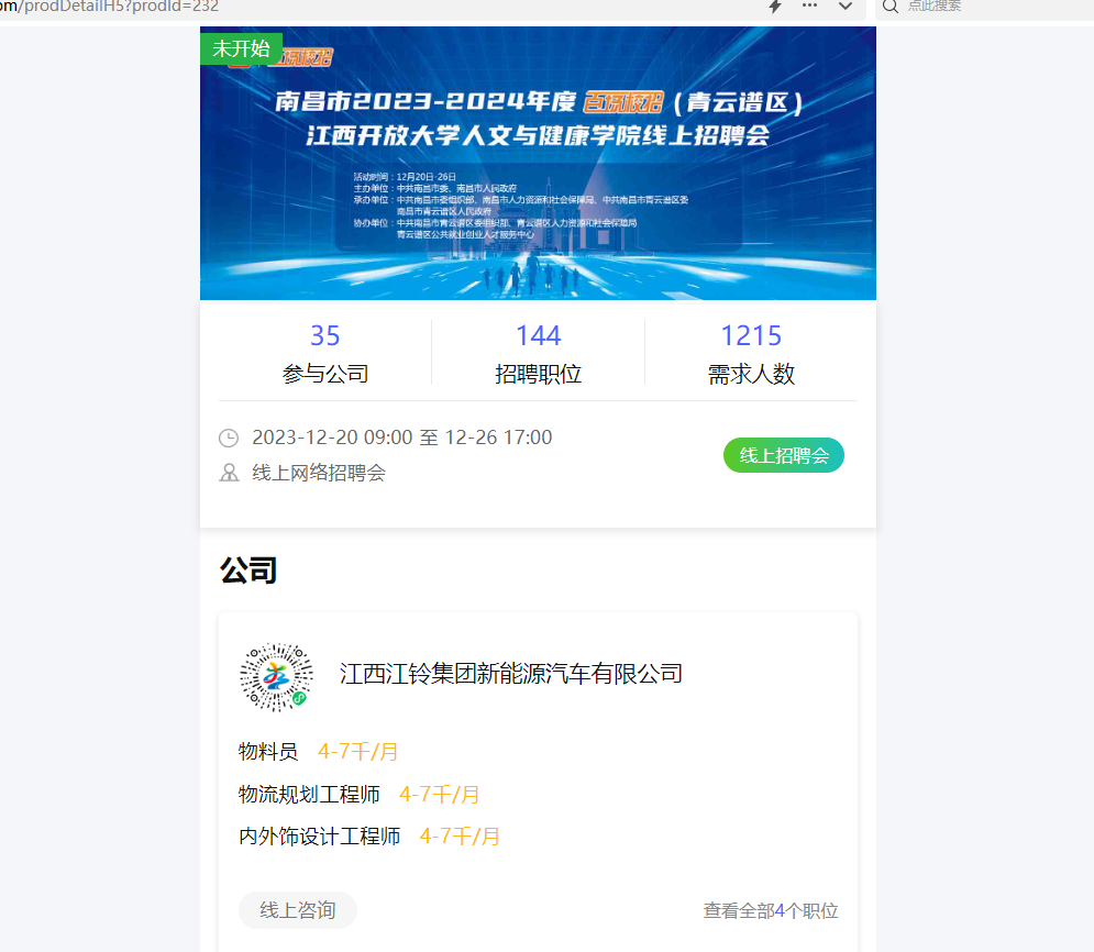 网址https://qypper.rencaidanao.com/prodDetailH5?prodId=232南昌市2023-2024年度“百场校招”(青云谱区)江西开放大学人文与健康学院线上招聘会(12月20日-26日)