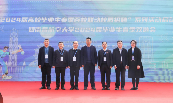 319日,“江西省2024届高校毕业生春季百校联动校园招聘”系列活动启动仪式暨南昌航空大学2024届毕业生春季双选会在南昌航空大学前湖校区室外足球场举办。江西省教育评估监测研究院党委书记刘静俭,南昌航空大学党委副书记、校长卢超出席仪式并共同启动活动。江西开放大学人文与健康学院培训部干事胡启明和辅导员许鹏,用人单位代表和毕业生到场参加。