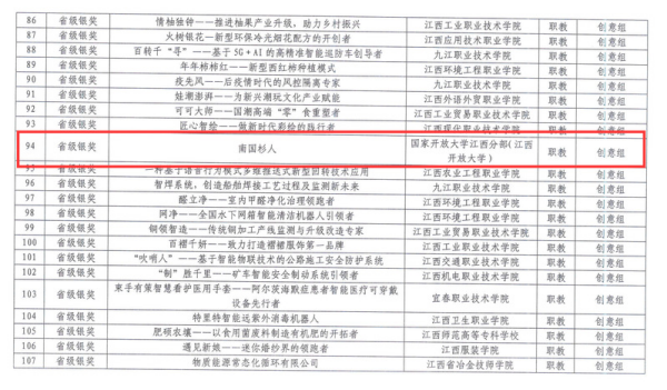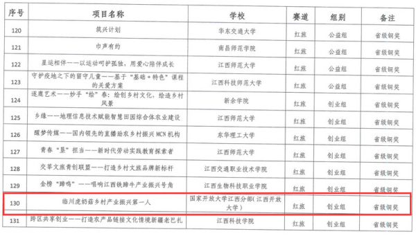 据悉,本次省级大赛中参加职教赛道有139790个项目,参加“青年红色筑梦之旅”赛道有52398个项目,在与全省各高校的激烈角逐中,江西开放大学最终获得了1银1铜,实现了获奖层次和数量的突破。学校将不断总结经验,整合各项资源做好我校创新创业教育工作,坚持以赛促教、以赛促学、以赛促创,积极培养学生创新精神、创业意识,努力提升学生创新创业能力。